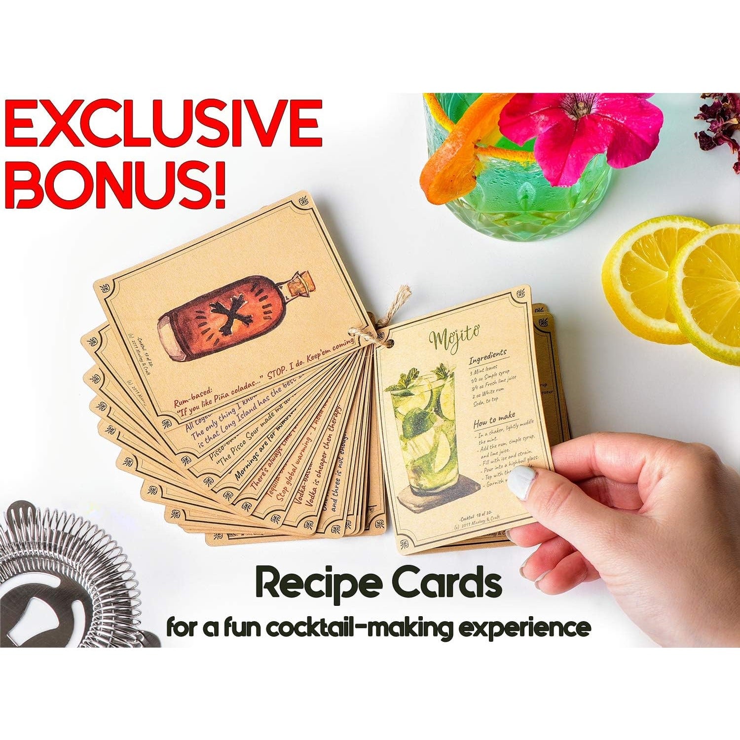 - Unser Bar-Werkzeugset ist ein großartiges Geschenk für alle, die gerne mixen, und mit den enthaltenen Rezeptkarten können Sie klassische Cocktails und die neusten Mixologie-Trends kreieren.