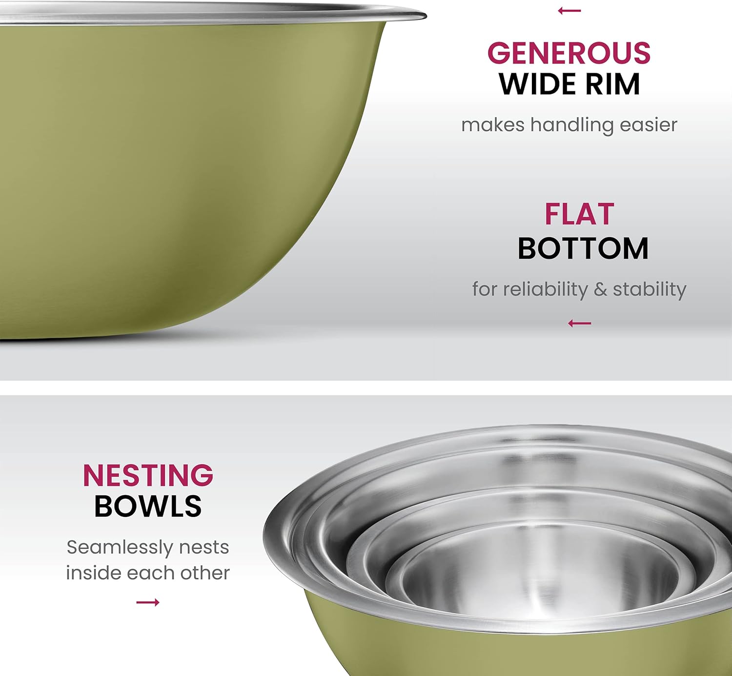 FineDine Edelstahl-Geschirrschalen – leicht zu reinigen, stapelbare Schalen für platzsparende Lagerung, ideal zum Kochen, Backen, Vorbereiten, 5 Quarts