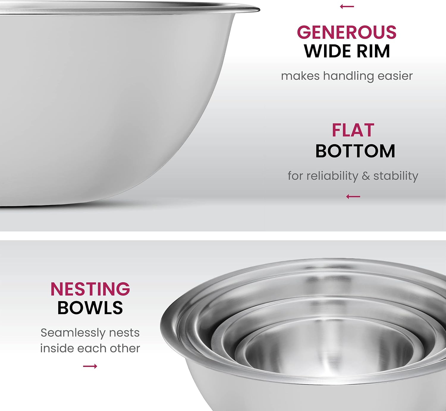 - EDELSTAHL - Verfügt über eine attraktive Spiegeloberfläche für einen eleganten Look, der Ihre Küche aufwertet. Diese Metallschüsseln sind leicht zu reinigen sowie geruchs-, flecken- und geschmacksresistent