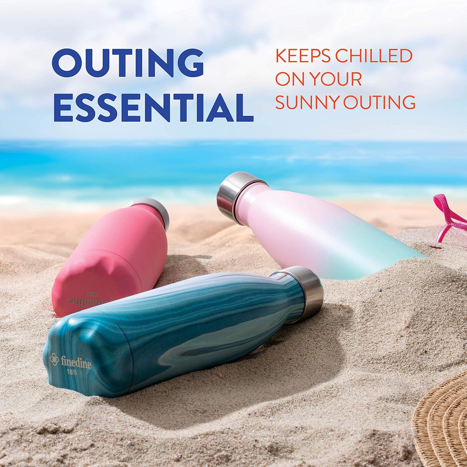 FineDine Dreifach isolierte Edelstahl-Wasserflasche (2er-Set) 17 oz, elegante Flaschen, hält heiß und kalt, 100 % auslaufsicher, schweißfeste Wasserflaschen, ideal für Reisen, Picknick und Camping