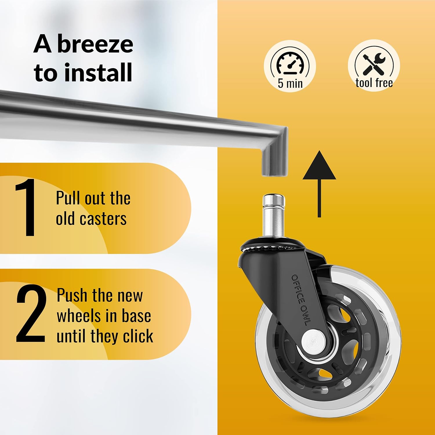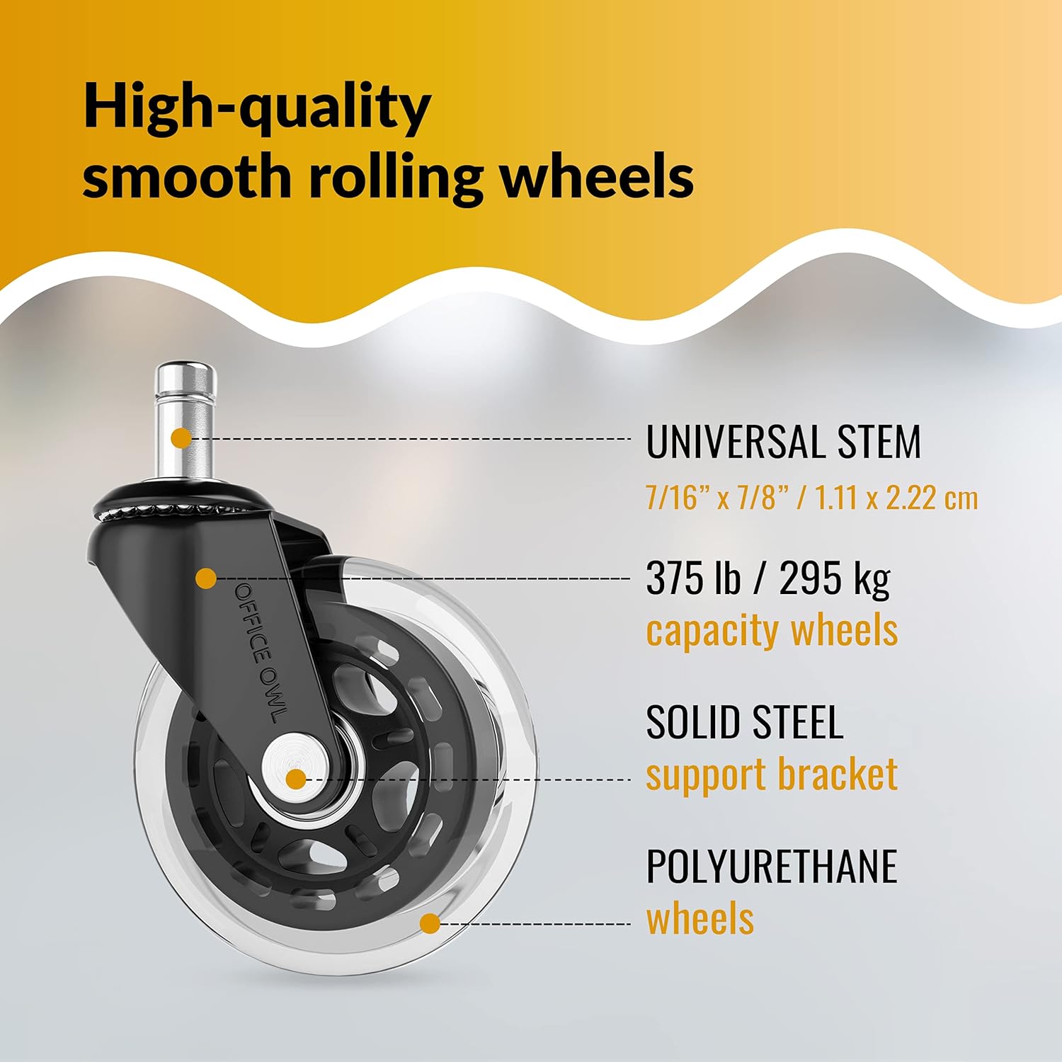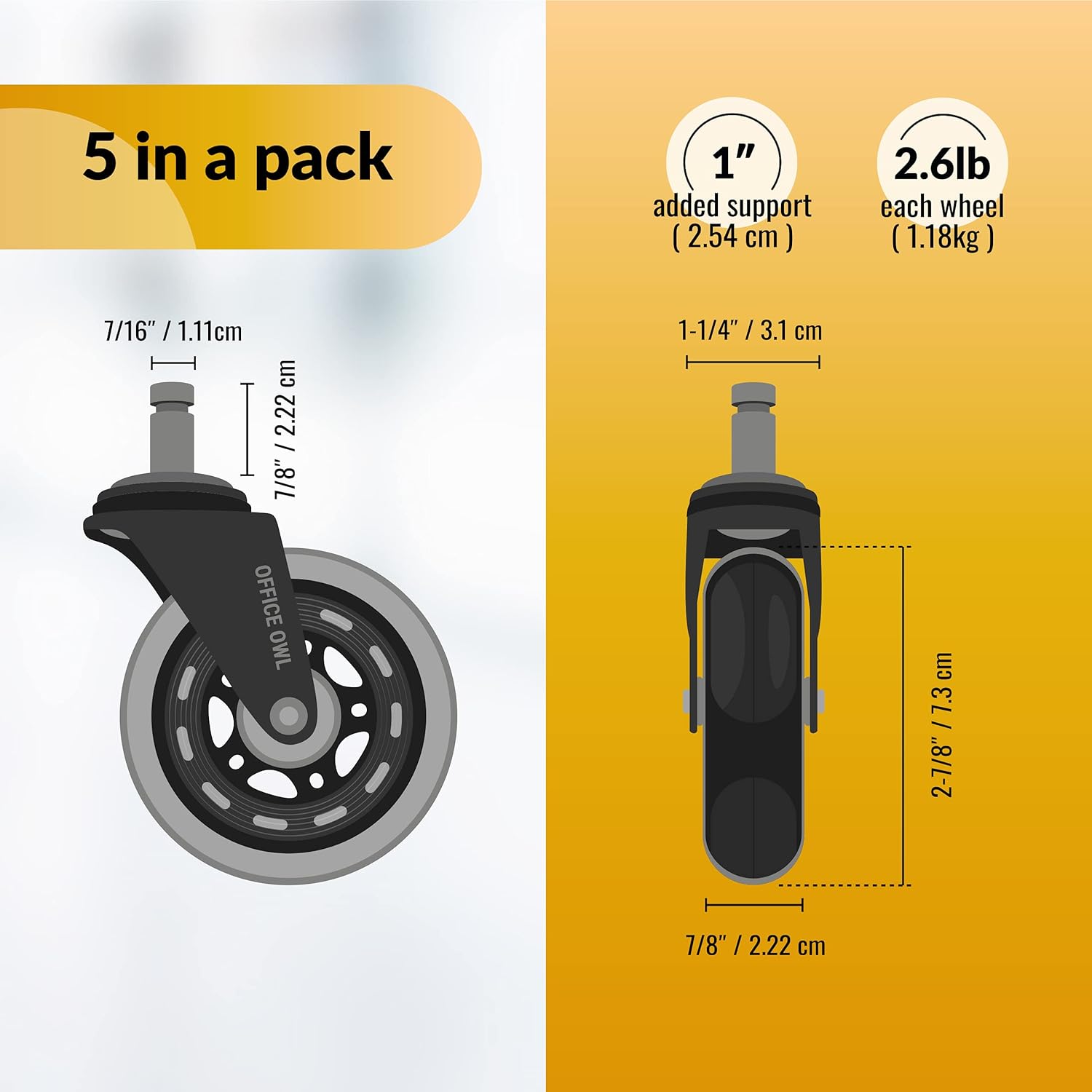 Office Owl Schreibtischstuhlrollen – Rollerblade-Rolle für universellen Stuhlrollenersatz – Set mit 5 robusten Stuhlrollen – trägt bis zu 295 kg
