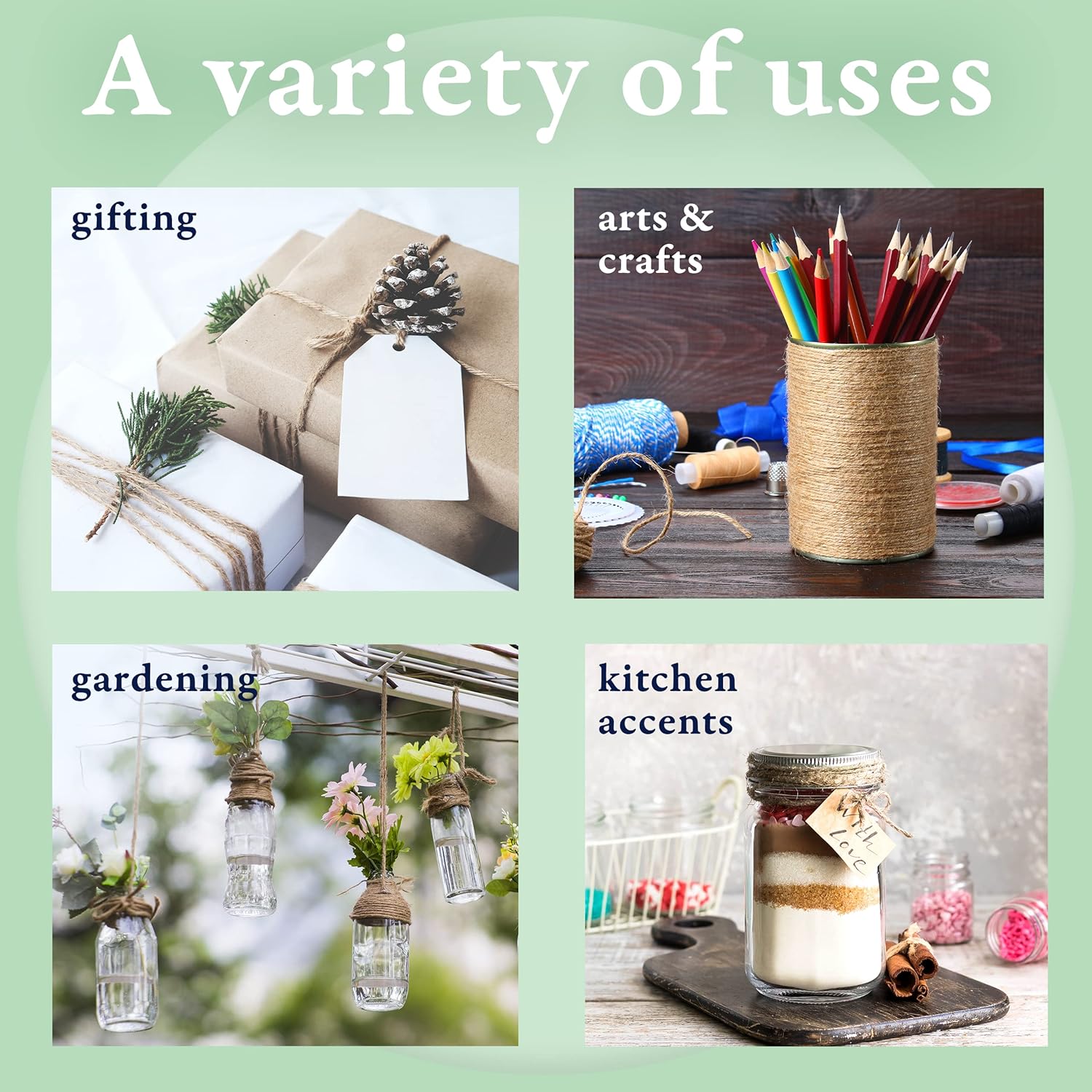 - MULTIPURPOSE: A craft essential, this jute rope works great as decorative wrap for mason jars, wedding favors, gifts and even in the garden. Use it as your parsley, sage, and rosemary twine!