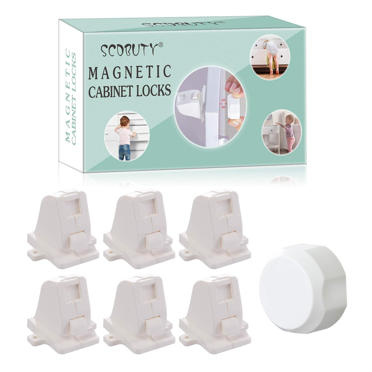 Our magnetic cabinet locks require no drilling or tools! Simply measure, stick, and secure these child-proofing cabinet locks in no time, closing your cabinets and drawers completely and preventing little fingers from getting pinched.