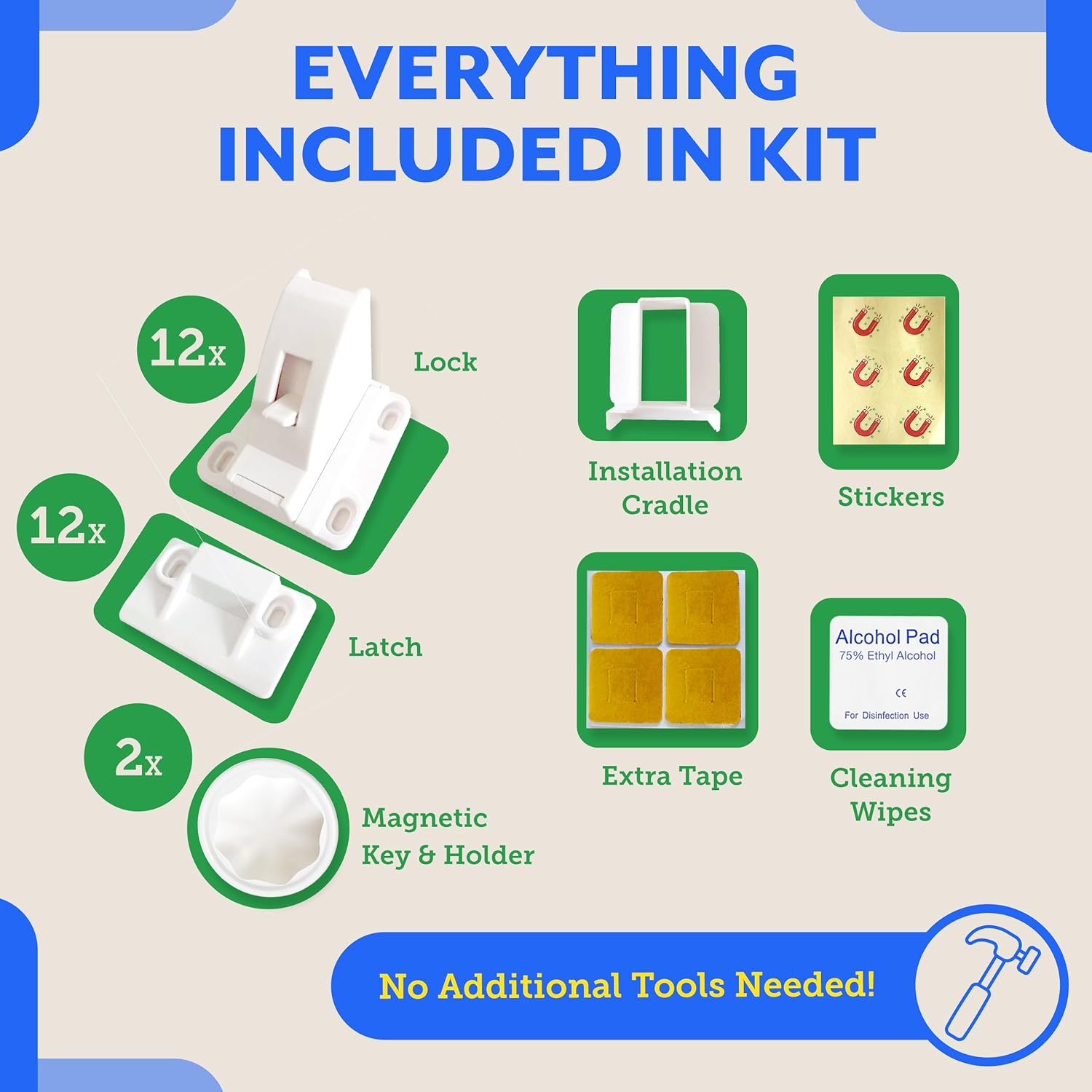 Baby Proofing Made Simple! High standard of baby safety magnetic locks. Securely lock cabinets and drawers with no tools or hardware!