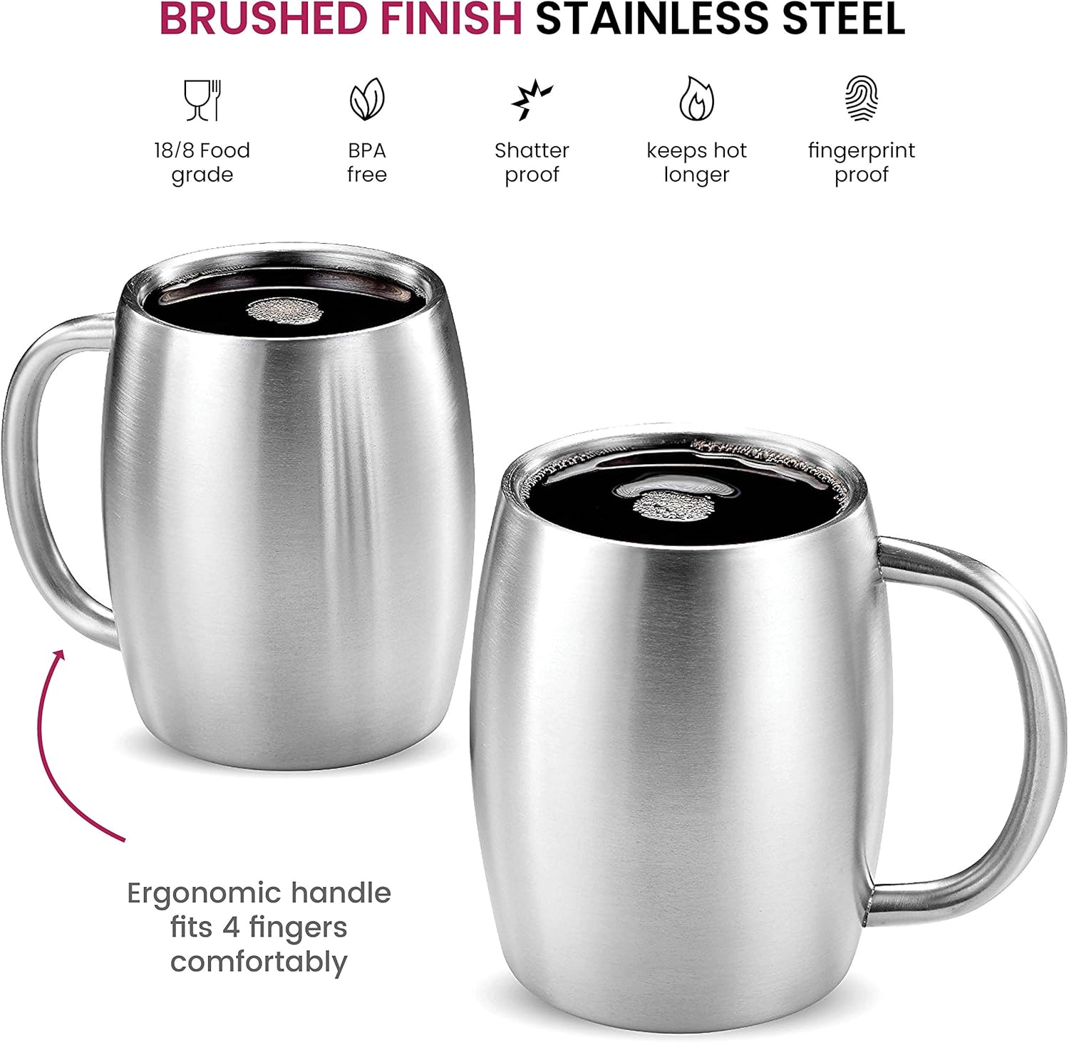 Easily wash the mugs by hand or toss them in the dishwasher when pressed for time! These very hard-wearing cups can handle infinite trips to the dishwasher without getting damaged, scratched, or rusty.