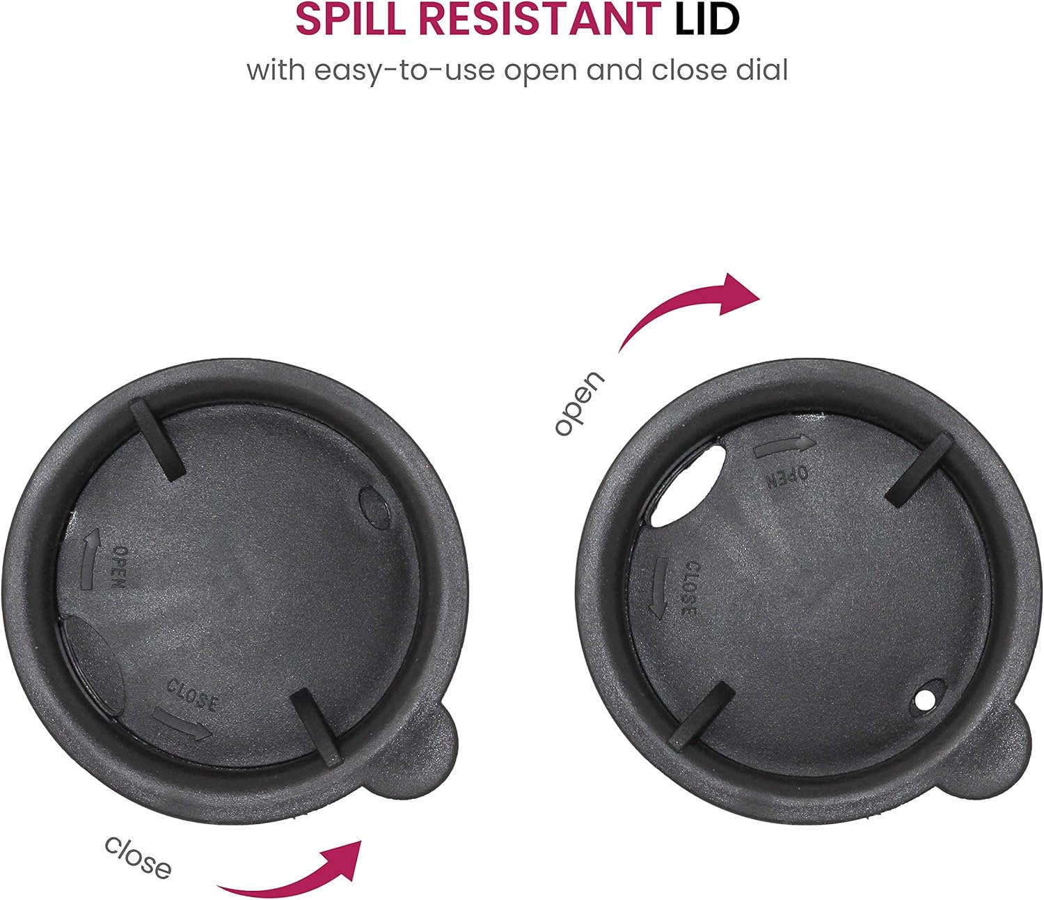 Take your beverage outdoors on a scenic picnic with these portable mugs! The spill and leak resistant lids prevent splashing and mess and the dial window keeps bugs out of your drinks!