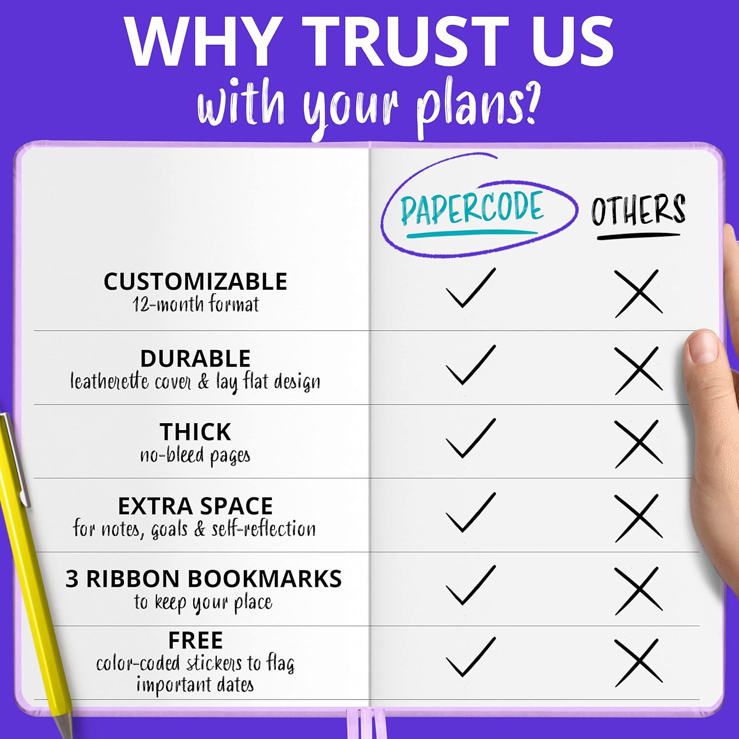 Simple Elephant 2024 Undated Planner - Monthly, Weekly, Daily, Leather Agenda, No Bleed Pages Lilac