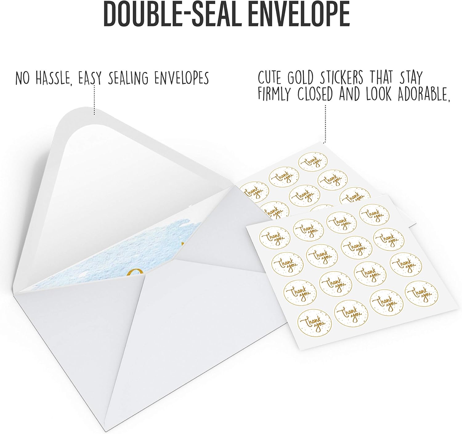 Sealed with care: No more struggling with poorly sealed envelopes! Our cards come with strong adhesive and charming floral stickers, ensuring that the envelopes stay securely closed and look lovely. They’re the perfect finishing touch to show your appreciation.