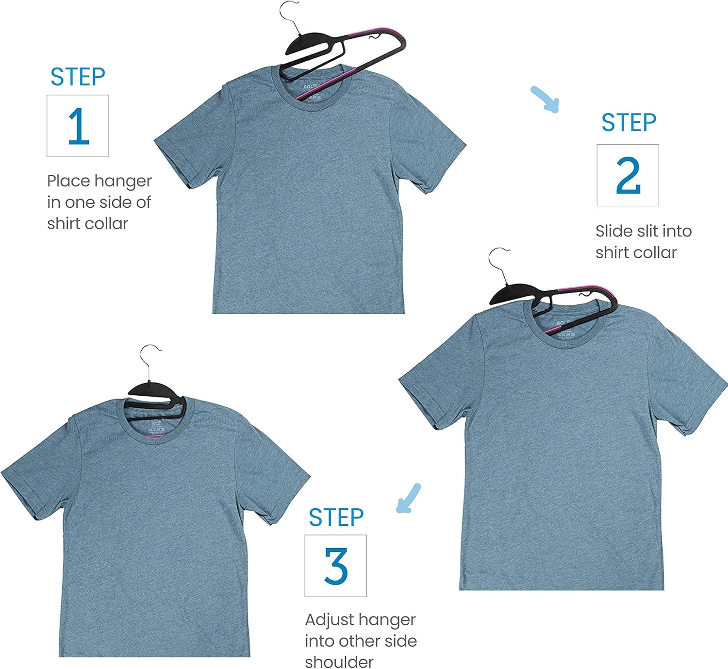 Simply slide the u-line slit into one side of your shirt collar, adjust the other side, and done! You’ve hung your narrow-collared shirt without stretching it out! You’ll never want to go back to traditional hangers again!